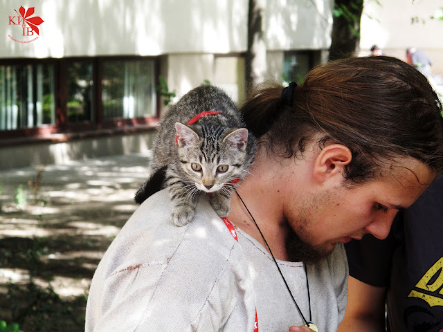 Хіба що один столик під будинком B переносив нас в раннє середньовіччя, коли ріками та морями плавали вікінги, а під священними дубами жерці палили жертовні багаття своїм богам. Набір товарів трохи нагадав нам скансен в Біскупіні (центральна частина Польші, околиці Гнєзна). Власне, тут зустрілися зі дуже няшними домашніми улюбленцями: двома котиками та дуже приязним песиком. Таке на фестивалях бачимо вперше.