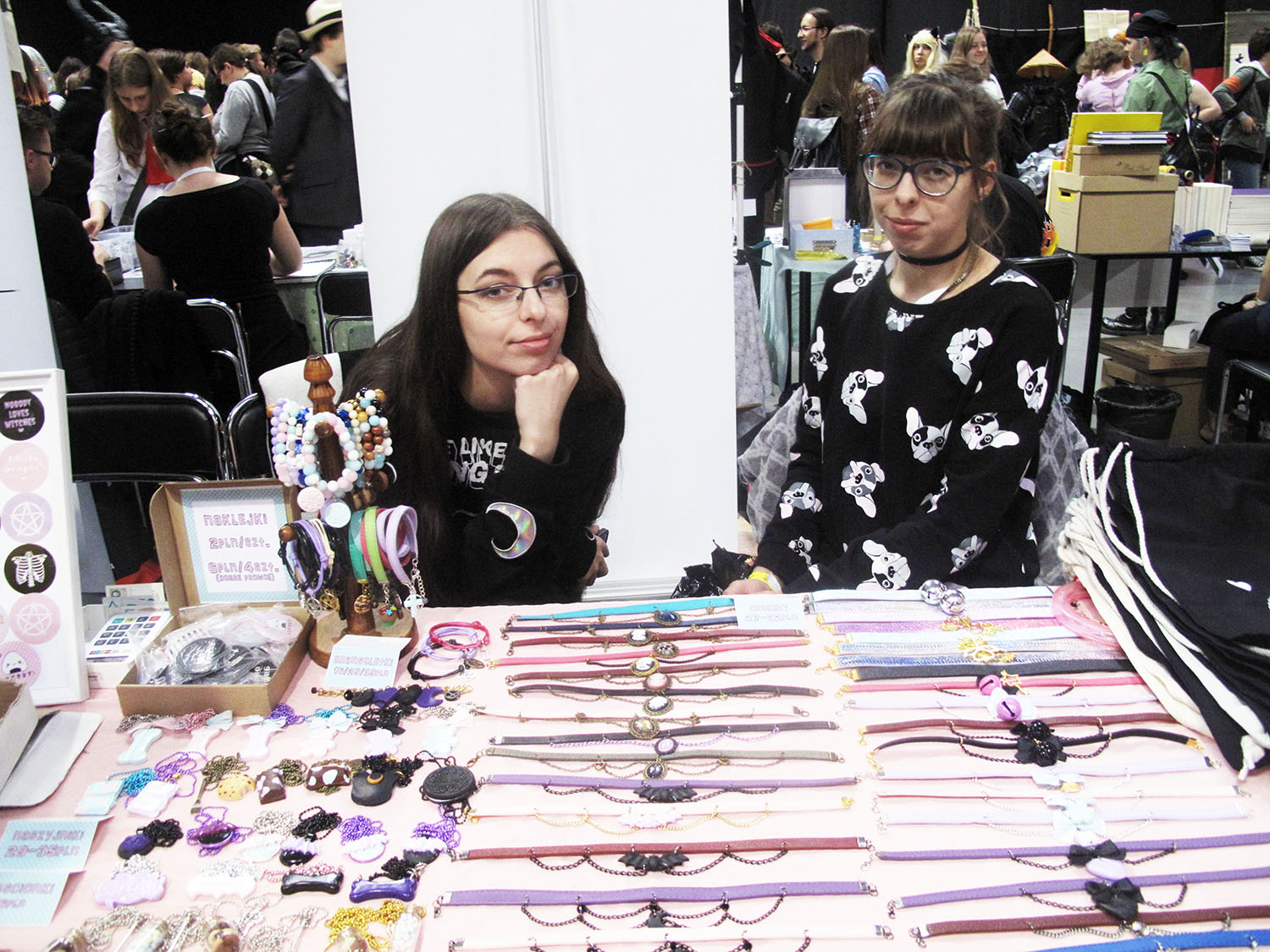 Oprócz tradycyjnych towarów widywanych na konwentach, dostrzegłem całkiem sporo produktów z mody alternatywnej. Chockery i koszulki od Miyaka-biżu, dziewczęce notatniki od NimPfa, ptasie czaszki, obrączki i kolczyki to tylko kilka przykładów. Brakowało mi jednak stanowisk skierowanych typowo dla warsztatowiczów, jak stoiska z gotowymi strojami czy chociaż półfabrykatami lub piankami itp. Widziałem chyba jedynie wigi.