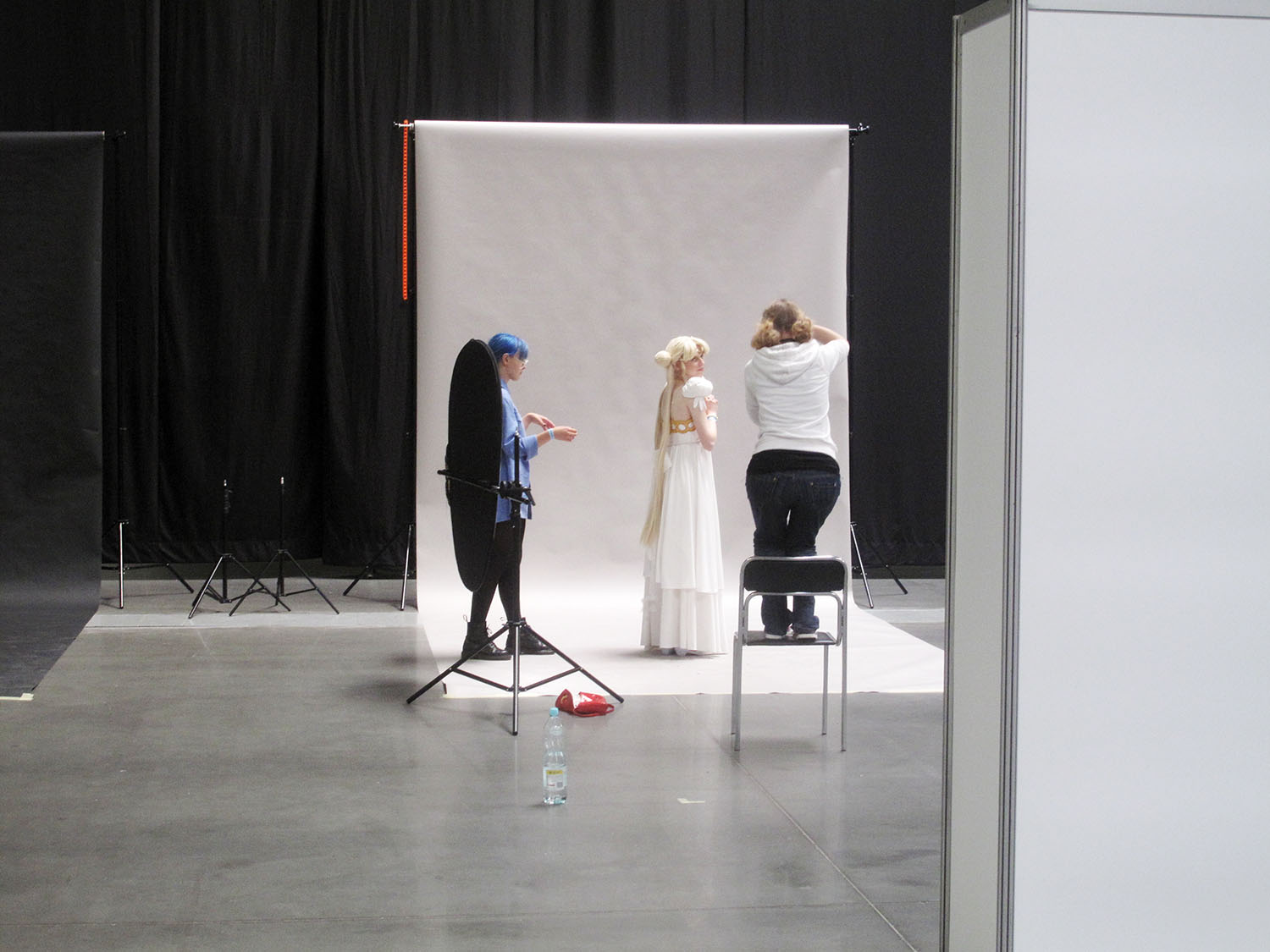 Tutaj też było główne miejsce “konfrontacji” konwentowiczów i fotografów z cosplayerami. Razem bawili się, tańczyli i rozmawiali. Oczywiście dało się słyszeć co chwila zamykanie przesłony aparatów, bo akurat szedł jakiś idol. Media raczej nie czuły się zawiedzione, bo poza koniecznością łowienia najlepszych w swoich gustach, cosplayerów; otrzymali także do dyspozycji fotostudio ulokowane zaraz obok wejścia na scenę. Liczę, że sesje były naprawdę owocne.