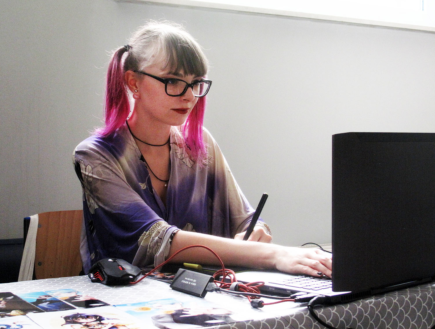 W strefie Handmade pewna piękna iorisu rysowała swoje arty. Co prawda niedługo, bo wczesnym wieczorem spotkaliśmy ją w Sali Widowiskowej.